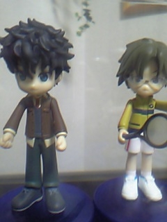 でね、よそ様で頭と身体を入れ替えてるのを見て、すげー萌えたのでわたしも赤也にレア不二の私服を着せてみましたvvかわゆいっ!!!!服のイメージが赤也っぽくないけど、ユニとは違った可愛さでメロキュンです/////ちなみにとなりは立海大のコスしてる手塚です♪ちょっと柳生にも見えるので「レーザービーム」の格好をさせてみたんだけど、いつのまにか中途半端な体勢になってた(笑)↓コレ^^